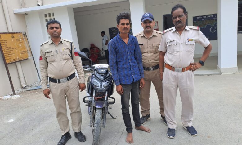 बाजार में खड़ी मोटर सायकल का लॉक तोड़कर चोरी करने वाले चोर से 60 हजार रुपये कीमती मोटर सायकल को अमिलिया पुलिस ने 24 घंटे के अंदर किया जप्त।।