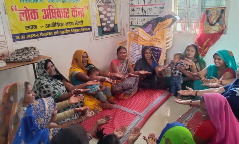 सीधी-जेण्डर आधारित हिंसा की रोकथाम के लिये चलाये जा रहे विशेष कार्यक्रम हम होंगे कामयाब पखवाडे के अन्तर्गत कलेक्टर स्वरोचिष सोमवंशी तथा मुख्य कार्यपालन अधिकारी जिला पंचायत अंशुमन राज के मार्गदर्शन एवं जिला परियोजना प्रबंधक पुष्पेन्द्र कुमार सिंह के निर्देशन तथा जिला जेण्डर नोडल युवा सलाहकार हरीराम त्रिपाठी के सहयोग से विकासखण्ड सिहावल के लोक अधिकार केन्द्र में महिला बाल विकास एवं आजीविका मिशन के संयुक्त तत्वाधान में हिंसा उन्मूलन संबंधी लैंगिंक समानता, महिलाओं के हक और अधिकार विभिन्न विभागों तक महिलाओं की पहुंच बनाये जाने हेतु संवाद, शपथ एवं मेहदी रंगोली कार्यक्रम का आयोजन किया गया। उक्त कार्यक्रम में उजाला संकुल स्तरीय संगठन से विभिन्न ग्राम संगठनों एवं समूह सदस्य की महिलाएं उपस्थित थी। कार्यक्रम में महिलाओं की विभिन्न प्रतियोगिताओं का आयोजन किया गया।