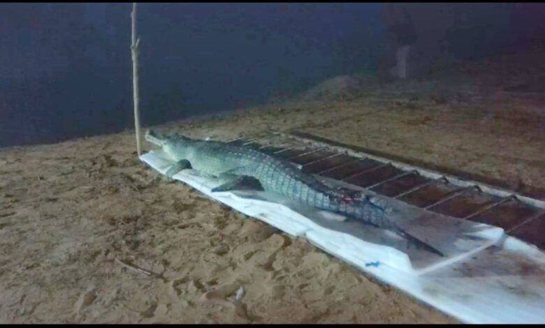 सोन घड़ियाल अभ्यारण्य बीट कुकरांव में नर घड़ियाल छोड़ा गया