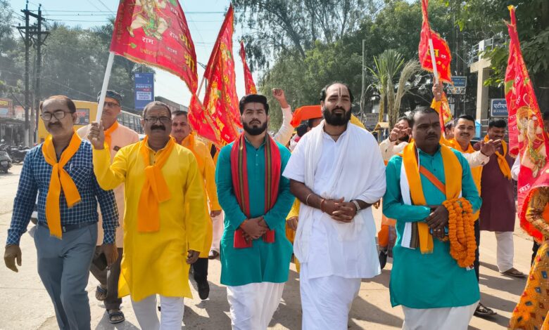 सीधी शहर के हृदय स्थल पूजा पार्क में संगीतमय श्रीराम कथा ज्ञानयज्ञ दिनांक 7 नवंबर 2025 दिन शुक्रवार को विशाल कलश यात्रा के साथ प्रारंभ हो चुकी है। श्रीधाम अयोध्या से पधारे कथा के सरस प्रवक्ता परम पूज्य निलेश महाराज के मुखारविंद से रस वर्षा हो रही है। सर्वप्रथम सोनांचल बस स्टैंड से मातृ शक्तियों द्वारा कलश पूजन कर कथा स्थल पूजा पार्क तक भव्य शोभा यात्रा निकाली गई जहां सैकड़ो के तादाद में मातृ-शक्तियों ने अपनी सहभागिता निभाई। दोपहर 3 बजे से शाम 7 बजे तक कथा चल रही है। इस दौरान कथा प्रवक्ता निलेश जी महाराज ने राम कथा सुनायी।उन्होंने कहा कि राम की महिमा अपरम्पार है।जीवन का आधार ही राम नाम है. श्रीराम कण-कण में रमण करने वाली शक्ति है और श्री राम की कथा का श्रवण करने से इंसान भवसागर से पार हो जाता है।श्रीराम की भक्ति मन, वचन और कर्म की शुद्धि का मार्ग प्रशस्त करती है। भगवान राम की कथा का श्रवण करना केवल पुण्य अर्जन नहीं, बल्कि आत्मा को जागृत करने का भी माध्यम है। उन्होंने कहा कि जो श्रद्धालु भागवान राम के आदर्शों को अपनाते हैं। उनका जीवन सार्थक और धन्य हो जाता है। सूर्य, चंद्रमा, अग्नि, वायु सभी में जो शक्ति है, वह राम नाम में समाहित है । कलश यात्रा के दौरान श्रद्धालु रामचरितमानस ग्रंथ को माथे पर लेकर चलते रहे। इस दौरान जय श्रीराम के जयकारे लगाये पारंपरिक वाद्य यंत्र और मंगलध्वनि गूंज रहे थे। इससे पूरा वातावरण भक्तिमय हो उठा। मुख्य रूप से प्रभात पांडे ,अर्जुन सिंह बघेल ,अश्वनी सिंह ,महेंद्र श्रॉफ, नरेश सिंह, जितेंद्र सिंह ,अरुण सिंह, रमेश गुप्ता, सत्य प्रसाद नामदेव, राजेश सिंह गहरवार, अंशुमान सिंह सहित सैकड़ो श्रद्धालु स्त्रोत उपस्थित रहे।