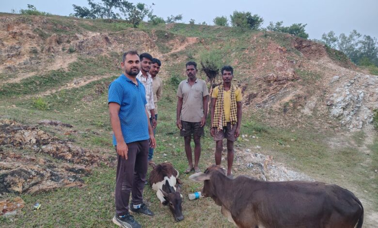 संघ के कार्यकर्ताओं ने दिखाई संवेदनशीलता, पहाड़ से गिरी गौ माता की बचाई जान