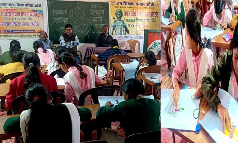 भारत सरकार जनजातीय कार्य मंत्रालय के निर्देशानुसार दिनाॅक 1 नवंबर से 15 नवंबर तक आयोजित किये जा रहे जनजातीय गौरव वर्ष पखवाड़ा के अगले चरण में आवासीय आदिवासी कन्या शिक्षा परिसर की बालिकाओं के मध्य आदिवासी संस्कृति एवं रहन-सहन पर आधारित पोस्टर मेकिंग प्रतियोगिता का आयोजन शिक्षा परिसर के सभागार में किया गया। जिसमें 28 बालिकाओं ने भाग लिया और अपनी प्रतिभा को कैनवास पर चित्रकारी कर प्रदर्शत किया।इस दौरान छात्राओं द्वारा रंगो एवं फूलों से शानदार आकर्षक रंगोली बनाई गई रंगोली में आदिवासी नृत्य औजार पशु एवं भगवान बिरसा मुंडा का रंगोली चित्र आदि का सुंदर सजीव वर्णन रंगोली के मध्य छात्राओं द्वारा प्रस्तुति दी गई रंगोली का अवलोकन जन शिक्षण संस्थान से श्रीमती रेखा सिंह ,सुश्री शीतल द्विवेदी, रिंकेश जी ने किया एवं छात्रों के इस प्रयास की भरपूर प्रशंसा की है।इस अवसर पर संस्था प्राचार्य ए.पी.सिंह ने चित्रकला एवं रंगोली का अवलोकन करते हुए कहा कि वास्तव में चित्रकला किसी भी व्यक्ति के मनोभावों को व्यक्त करने का शसक्त माध्यम है कोई भी व्यक्ति जो चित्रकला में माहिर होता है वह बिना बोले ही कई सामाजिक विषयों को अपने चित्रों के माध्यम से आईना दिखाने का प्रयास करता है। अतः आवश्यक है कि हम सभी इस कला के माध्यम से दिए गए विषयों पर समाज को जागृत करने का प्रयास करें क्योंकि चित्र व्यक्ति के मानस पटल पर गहरा प्रभाव छोड़ते है।कार्यक्रम में उपस्थित कार्यक्रम प्रभारी शिक्षक अंजनी सिंह एवं कीर्ति गुप्ता द्वारा छात्राओं का उत्साह वर्धन करते हुए बताया गया कि वास्तव मे यह कला बेजुबान होते हुये भी बहुत कुछ कह जाती है जिसके लिए वाणी की आवश्यकता नहीं होती। चित्रकार क्या सोचता है यह उसके द्वारा उकेरे गए चित्रों या पोस्टरों के माध्यम से समझा जा सकता है।