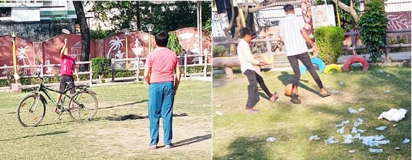 नेहरू पार्क में साइकिल, क्रिकेट व फुटबॉल का कब्जा, प्रशासन मौन