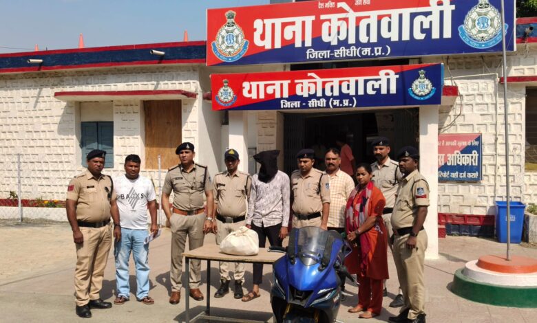 पुलिस महानिरीक्षक रीवा जोन, रीवा गौरव राजपूत के निर्देशन में चलाए जा रहे ‘अभियान प्रहार 2.0’ के अंतर्गत नशे के अवैध कारोबार और तस्करी के विरुद्ध सीधी पुलिस की कार्यवाही निरंतर जारी है। इसी क्रम में पुलिस अधीक्षक सीधी संतोष कोरी के मार्गदर्शन, अतिरिक्त पुलिस अधीक्षक अरविंद श्रीवास्तव एवं उप पुलिस अधीक्षक मुख्यालय अमन मिश्रा की देखरेख में थाना प्रभारी कोतवाली निरीक्षक अभिषेक उपाध्याय के नेतृत्व में कोतवाली पुलिस टीम द्वारा अवैध नशीली दवाओं की तस्करी करने वाले एक आरोपी को गिरफ्तार करने में महत्वपूर्ण सफलता अर्जित की है। पुलिस के अनुसार दिनांक 26 मार्च 2026 एवं 27 मार्च 2026 की दरमियानी रात पुलिस को मुखबिर के माध्यम से पुख्ता सूचना प्राप्त हुई कि सोनाखांड निवासी एक युवक अपनी स्पोर्ट्स मोटरसाइकिल पर भारी मात्रा में अवैध नशीली कफ सिरप लेकर बेचने की फिराक में जा रहा है। सूचना की गंभीरता को देखते हुए थाना प्रभारी द्वारा तुरंत पुलिस टीम गठित कर कार्यवाही हेतु निर्देशित किया गया।