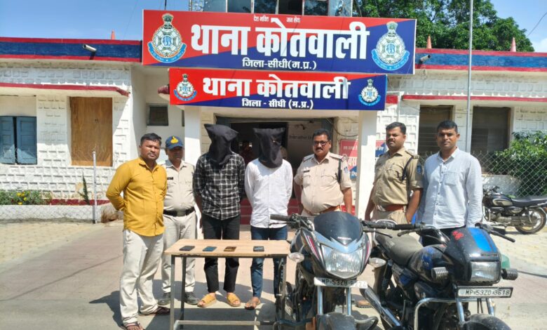 सीधी जिले में संपत्ति संबंधी अपराधों पर अंकुश लगाने हेतु पुलिस अधीक्षक संतोष कोरी द्वारा चलाए जा रहे विशेष अभियान के तहत अतिरिक्त पुलिस अधीक्षक अरविंद श्रीवास्तव एवं उप पुलिस अधीक्षक मुख्यालय अमन मिश्रा के प्रभावी नेतृत्व में थाना कोतवाली पुलिस ने मोबाइल झपटमारी करने वाले एक सक्रिय गिरोह के दो सदस्यों को गिरफ्तार करने में सफलता प्राप्त की है। पुलिस के अनुसार बीते दिनों थाना कोतवाली अंतर्गत क्षेत्र में अज्ञात बाइक सवार बदमाशों द्वारा एक राहगीर का मोबाइल जबरन छीनकर भागने की घटना घटित हुई थी। शिकायत प्राप्त होते ही पुलिस ने धारा 304(2) बीएनएस के तहत मामला पंजीबद्ध कर विवेचना शुरू की। मोबाइल झपटमारी की बढ़ती घटनाओं को गंभीरता से लेते हुए वरिष्ठ अधिकारियों द्वारा तत्काल आरोपियों की गिरफ्तारी हेतु निर्देशित किया गया था।-सीसीटीव्ही फूटेज , मुखबिर तंत्र और घेराबंदी से सफलता-थाना प्रभारी कोतवाली के नेतृत्व में गठित टीम ने घटनास्थल के आसपास के सीसीटीवी फुटेज और साइबर सेल की तकनीकी मदद से संदिग्धों को चिन्हित किया। मुखबिर तंत्र और तकनीकी साक्ष्यों के आधार पर पुलिस ने घेराबंदी कर दो संदेहियों को हिरासत में लिया। गिरफ्तार आरोपियों में विष्णु उर्फ रितेश गुप्ता पिता पवन गुप्ता 21 वर्ष निवासी बंजारी थाना जमोड़ी, अतुल सिंह चौहान पिता शंकर सिंह चौहान 21 वर्ष निवासी सुकवारी थाना जमोड़ी शामिल हैं। कड़ाई से पूछताछ करने पर आरोपियों ने शहर के विभिन्न क्षेत्रों में मोबाइल झपटमारी की वारदातों को अंजाम देना स्वीकार किया।पुलिस ने आरोपियों की निशानदेही पर 04 नग मोबाइल फोन विभिन्न कंपनियों के अनुमानित कीमत 46 हजार रुपये, 02 मोटरसाइकिलों में घटना में प्रयुक्त एक हीरो स्प्लेंडर प्लस और एक होंडा शाइन अनुमानित कीमत 1 लाख 50 हजार शामिल हैं। जब्त कुल मशरुका लगभग 1 लाख 96 हजार रुपये का है। 2 फरार आरोपियों की तलाश जारी-पूंछताछ के दौरान गिरोह में शामिल दो अन्य सदस्यों के नाम भी सामने आए हैं। पुलिस की विशेष टीमें उनकी गिरफ्तारी हेतु संभावित ठिकानों पर दबिश दे रही हैं। जल्द ही उन्हें भी गिरफ्तार कर न्यायालय के समक्ष पेश किया जाएगा। उक्त कार्रवाई में थाना प्रभारी कोतवाली निरीक्षक अभिषेक उपाध्याय, उप निरीक्षक विवेक द्विवेदी, प्रधान आरक्षक आनंद शर्मा, आरक्षक राजकुमार मिश्रा, प्रखर पांडेय, अनुराग यादव , शिवेंद्र मिश्रा की विशेष एवं सराहनीय भूमिका रही।