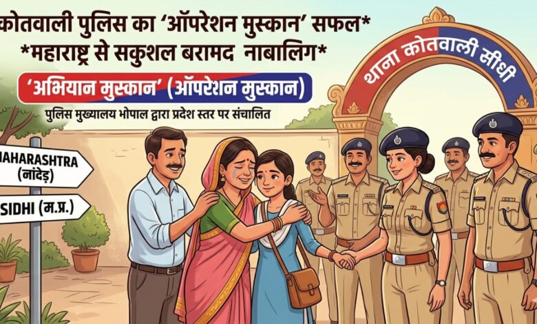 पुलिस मुख्यालय भोपाल द्वारा प्रदेश स्तर पर चलाए जा रहे अभियान मुस्कान के तहत सीधी पुलिस ने एक बड़ी मानवीय सफलता अर्जित की है। पुलिस अधीक्षक सीधी संतोष कोरी के निर्देशन, अतिरिक्त पुलिस अधीक्षक अरविंद श्रीवास्तव एवं नगर पुलिस अधीक्षक अमन मिश्रा के मार्गदर्शन में थाना कोतवाली पुलिस ने कर्तव्य के प्रति समर्पण का परिचय देते हुए जनवरी माह से लापता नाबालिग किशोरी को महाराष्ट्र के नांदेड़ से सकुशल बरामद किया है। उल्लेखनीय है कि गुमशुदा बच्चों की तलाश हेतु पुलिस मुख्यालय द्वारा विशेष अभियान मुस्कान चलाया जा रहा है। इसी कड़ी में थाना प्रभारी कोतवाली निरीक्षक अभिषेक उपाध्याय के नेतृत्व में गठित टीम ने तकनीकी साक्ष्यों और सूचना तंत्र को सक्रिय किया। दिनांक 22 जनवरी 2026 से लापता किशोरी, जिसकी तलाश में पुलिस की कई टीमें दिन-रात जुटी थीं, उसकी सटीक लोकेशन महाराष्ट्र में मिलते ही कोतवाली पुलिस ने बिना समय गंवाए दबिश दी और किशोरी को दस्तयाब करने में सफलता पाई।मां की डांट से नाराज होकर गई थी किशोरी- बरामदगी के बाद की गई पूंंछताछ में किशोरी ने भावुक होते हुए बताया कि वह घरेलू कामकाज को लेकर मां की डांट से नाराज होकर घर से निकल गई थी और रोजी-रोटी की तलाश में महाराष्ट्र चली गई थी। कोतवाली पुलिस ने न केवल उसे बरामद किया, बल्कि उसकी उचित काउंसलिंग भी की ताकि वह पुनः मुख्यधारा से जुड़ सके। थाना कोतवाली में जब किशोरी को उसके माता-पिता के सुपुर्द किया गया, तो वहां का माहौल अत्यंत भावुक हो गया। परिजनों ने अपनी बेटी को वापस पाकर सीधी पुलिस और विशेषकर कोतवाली थाना टीम की भूरि-भूरि प्रशंसा की। अभियान मुस्कान का वास्तविक उद्देश्य तब चरितार्थ हुआ जब बिछड़ी हुई बेटी अपने परिवार से मिली। उक्त कार्रवाई में निरीक्षक अभिषेक उपाध्याय थाना प्रभारी कोतवाली, सहायक उप निरीक्षक राजमणि रजक , प्रधान आरक्षक संजय मौर्य , महिला प्रधान आरक्षक किरण मिश्रा का सराहनीय योगदान रहा।