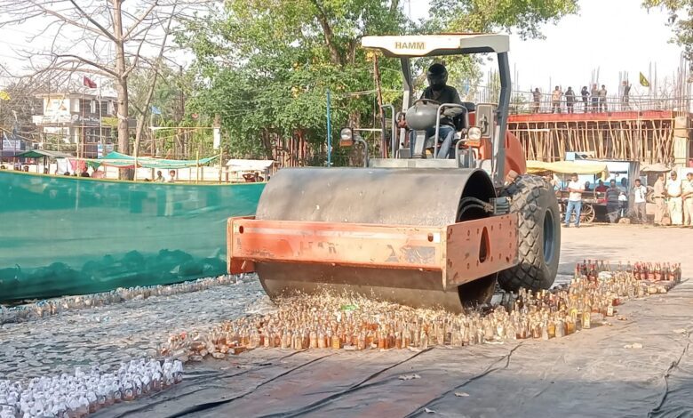 ऑपरेशन प्रहार के तहत जप्त मदिरा का नष्टीकरण