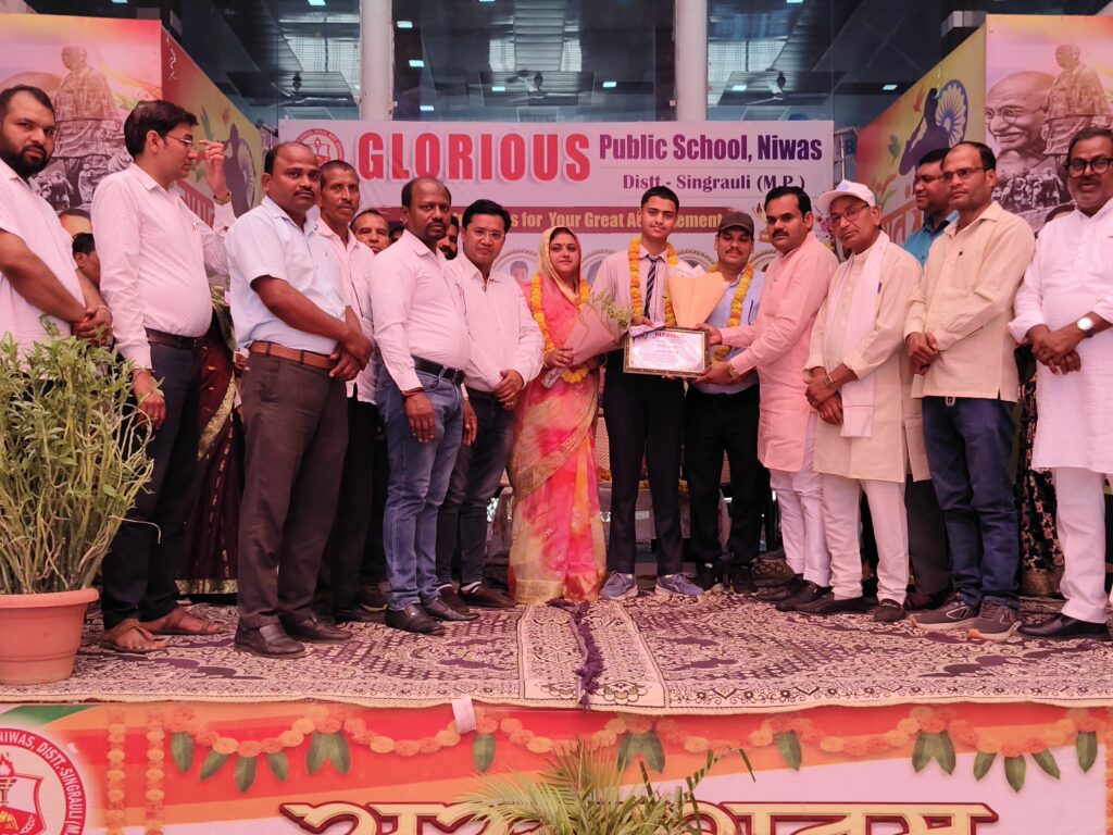 सिंगरौली जिले के दुरांचल ग्राम में स्थित निजी विद्यालय ग्लोरियस पब्लिक स्कूल जो उत्कृष्ट शिक्षा के माध्यम से अपनी एक अलग पहचान बनाई है। विद्यालय से पिछले वर्ष प्रज्ञा जायसवाल ने 500 में से 500अंकों के साथ इतिहास रचा था तथा अपना सतप्रतिसत वार्षिक परीक्षा परिणाम रहा वांही इस वर्ष भी विद्यालय का परीक्षा परिणाम सत प्रतिशत रहा तथा विद्यालय से कक्षा 10वीं में छात्र अभय पाण्डेय ने 97.6 प्रतिशत आंको के साथ विद्यालय में प्रथम तथा जिले में दूसरा स्थान प्राप्त किए, वहीं सक्षम दुबे 97.2 प्रतिसत अंको के साथ दूसरा स्थान तथा आकाश पाठक 97 प्रतिशत अंको के तीसरा स्थान पर रही साथ ही मुस्कान साकेत 96.2, सशंक सिंह 96.2, रितेश साहू 96 प्रतिशत आंको के साथ 17 बच्चे 90 प्रतिशत से ज्यादा तथा 18 बच्चे 80 प्रतिशत से ज्यादा रिजल्ट के साथ विद्यालय का हाई स्कूल का परीक्षा परिणाम 100 प्रतिशत रहा हैं। आज प्रतिभावान छात्र-छात्राओं का सम्मान समारोह कार्यक्रम का आयोजन किया गया, जिसमे उत्कृष्ट प्रदर्शन करने वाले कक्षा दसवीं के बच्चों के साथ साथ अन्य सभी कक्षाओं में स्थान प्राप्त करने वाले बच्चों को सम्मानित किया गया। कार्यक्रम में मुख्य अतिथि के रूप में विधायक प्रतिनिधि श्री राकेश सोनी जी ( विधायक प्रतिनिधि) जेडी साहू जी (अध्यक्ष जिला साहू समाज), जे पी साहू जी (पूर्व मंडल अध्यक्ष), प्राणपति साहू जी ( सरपंच पापल ), युबराज सिंह जी ( सरपंच निवास), सत्यदेव साहू जी, विनय जायसवाल जी, श्री ऋषिकेश शर्मा जी, रामनिहोर साहू जी, आशीष साहू जी, आशीष जायसवाल जी, रामसुजान साकेत जी, एस पी तिवारी जी, विद्यालय के प्राचार्य श्री आदित्यन राजा जी अभिभावक गण विद्यालय के बच्चे एवं सभी शिक्षक उपस्थित रहे। विद्यालय के संचालक आर. पी. विश्वकर्मा जी के द्वारा उत्कृष्ट प्रदर्शन करने वाले सभी बच्चों को विद्यालय की ओर से पांच पांच हजार रुपए पुरस्कार राशि की घोषणा की गई, साथ ही संचालक के द्वारा कहा गया कि विद्यालय का पहला बैच इस वर्ष कक्षा 12वीं में प्रवेश कर रहा है अतः विद्यालय से प्रदेश मेरिट में पहला स्थान प्राप्त करने वाले छात्र को विद्यालय की ओर से 1 लाख रुपए के पुरस्कार राशि तथा कक्षा दसवीं में प्रथम स्थान प्राप्त करने वाले बच्चों को 25 हजार रुपए के पुरस्कार राशि तथा अन्य सभी बच्चों को प्रदेश मैरिट सूची में स्थान प्राप्त करने पर 10 – 10 हजार रूपए की स्कॉलरशिप पुरस्कार स्वरूप देने की घोषणा देने की गई। विद्यालय के सभी अभिभावक एवं बच्चे कार्यक्रम को लेकर अत्यंत उत्साहित थे, विद्यालय के द्वारा उत्कृष्ट परीक्षा परिणाम लाने पर पूरे क्षेत्र में प्रसन्नता का माहौल है तथा अन्य बच्चे भी प्रेरणा लेकर उत्कृष्ट प्रदर्शन करने की तैयारी में लगे हुए हैं। विद्यालय के संचालक ने सभ